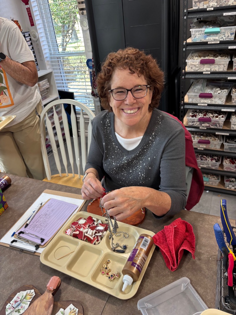 Do you want to party at your place? No problem! Amy offers mosaic and jewelry kits to do at your place and time. Mosaic kits for birthday parties are $25/each with 6 kit minimum. Each kit includes 1 wooden base, tesserae (broken dishes), embellishments, grout and instructions. Amy can build the kits or you can build the kits yourself.