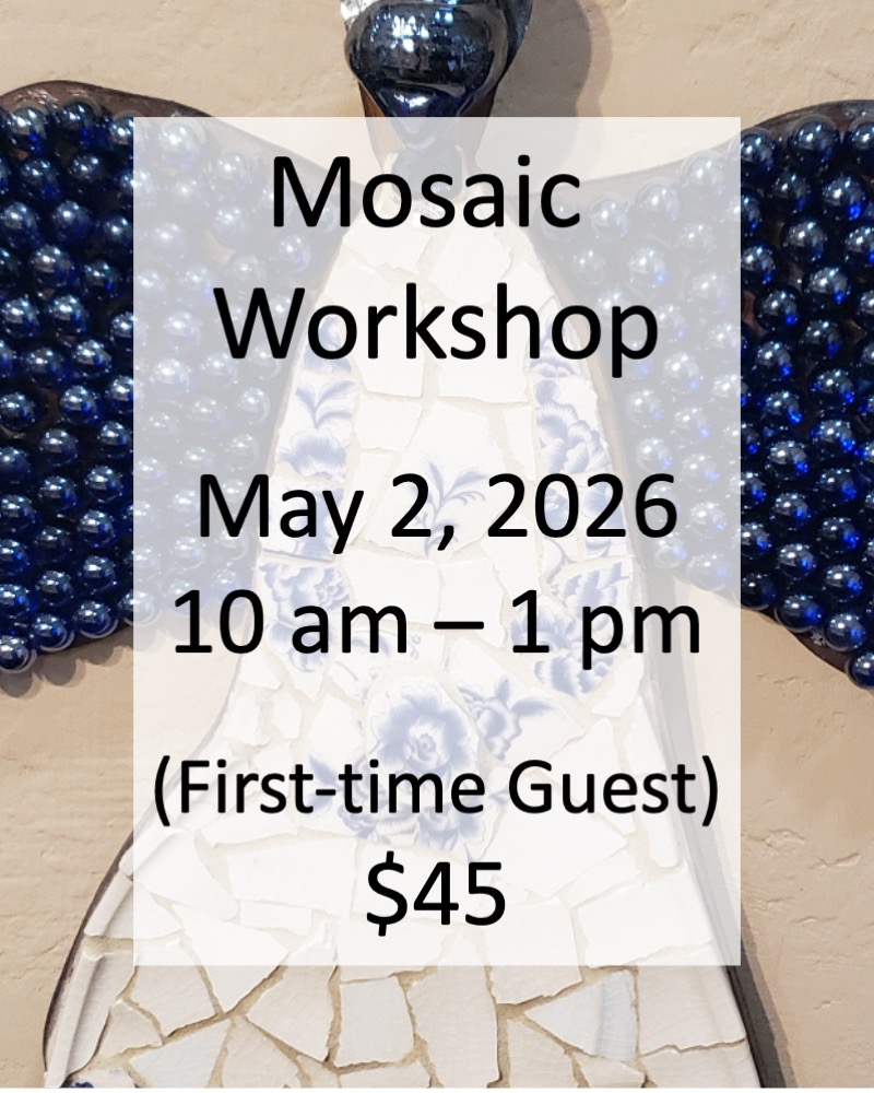 To register for a workshop, click the photo below for the workshop you want to attend. All major credit and debit cards (American Express, Discover Card, Mastercard and Visa) are accepted through online payment. If you would like to pay check or cash, call or text Amy at 972-746-7002 to make arrangements. The BBD Mosaic studio is wheelchair accessible, air-conditioned and family friendly with free on-site parking. If you need wheelchair access, contact Amy before the class so she can set it up.