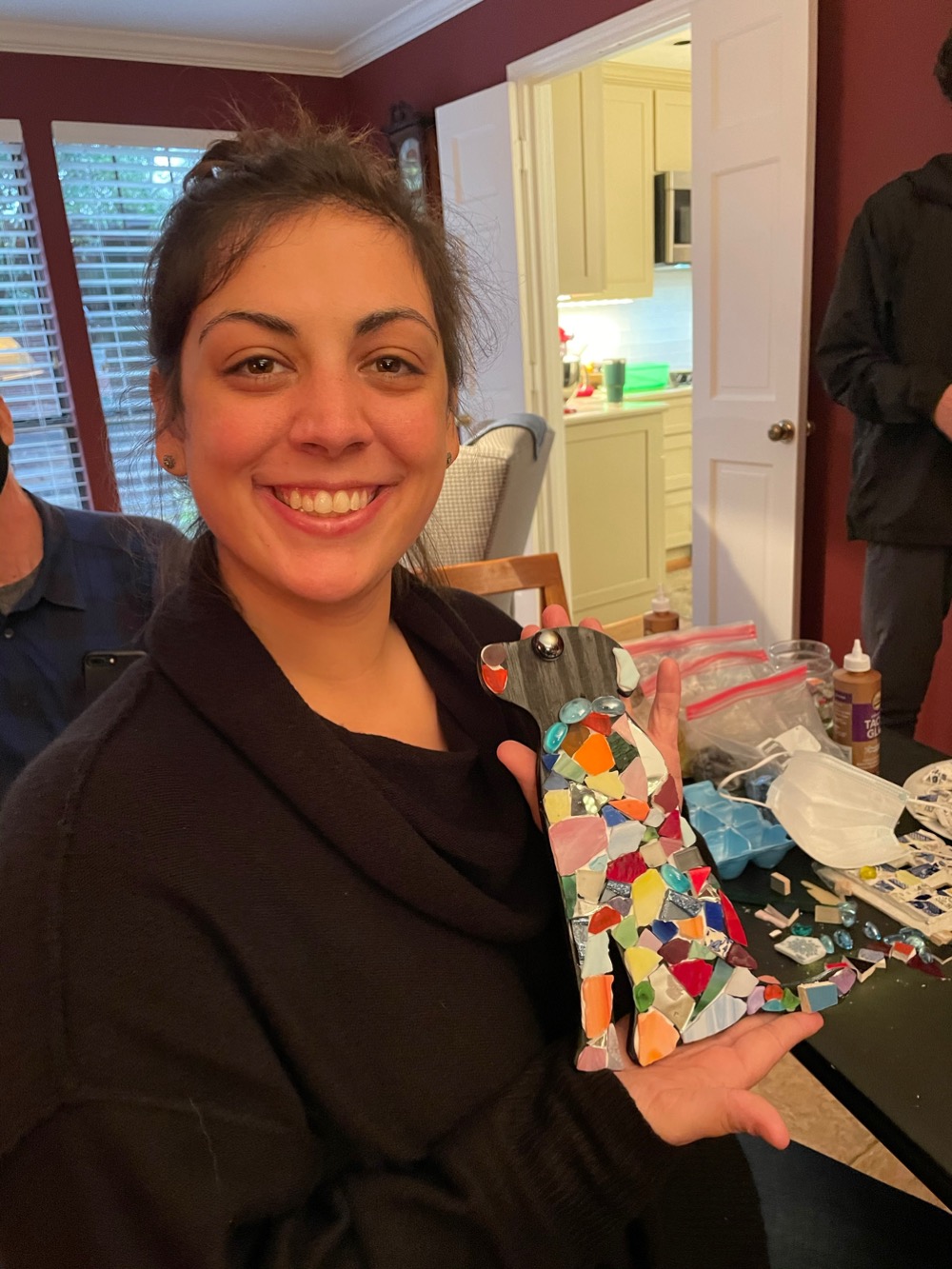 Making a mosaic without coming to a workshop is easier than ever with virtual kits. With a virtual kit, you pick up all the supplies, including tile nippers, and create outside of a workshop as your own pace. Virtual kits are different from mosaic kits in that you return all the supplies and Amy grouts the mosaic for you. You can create as many as you want or create in a group for a virtual workshop. To order your virtual mosaic kit, simply tell Amy what you want in the kit and she will put it together for you. Or you can come to her private studio and choose the materials yourself.